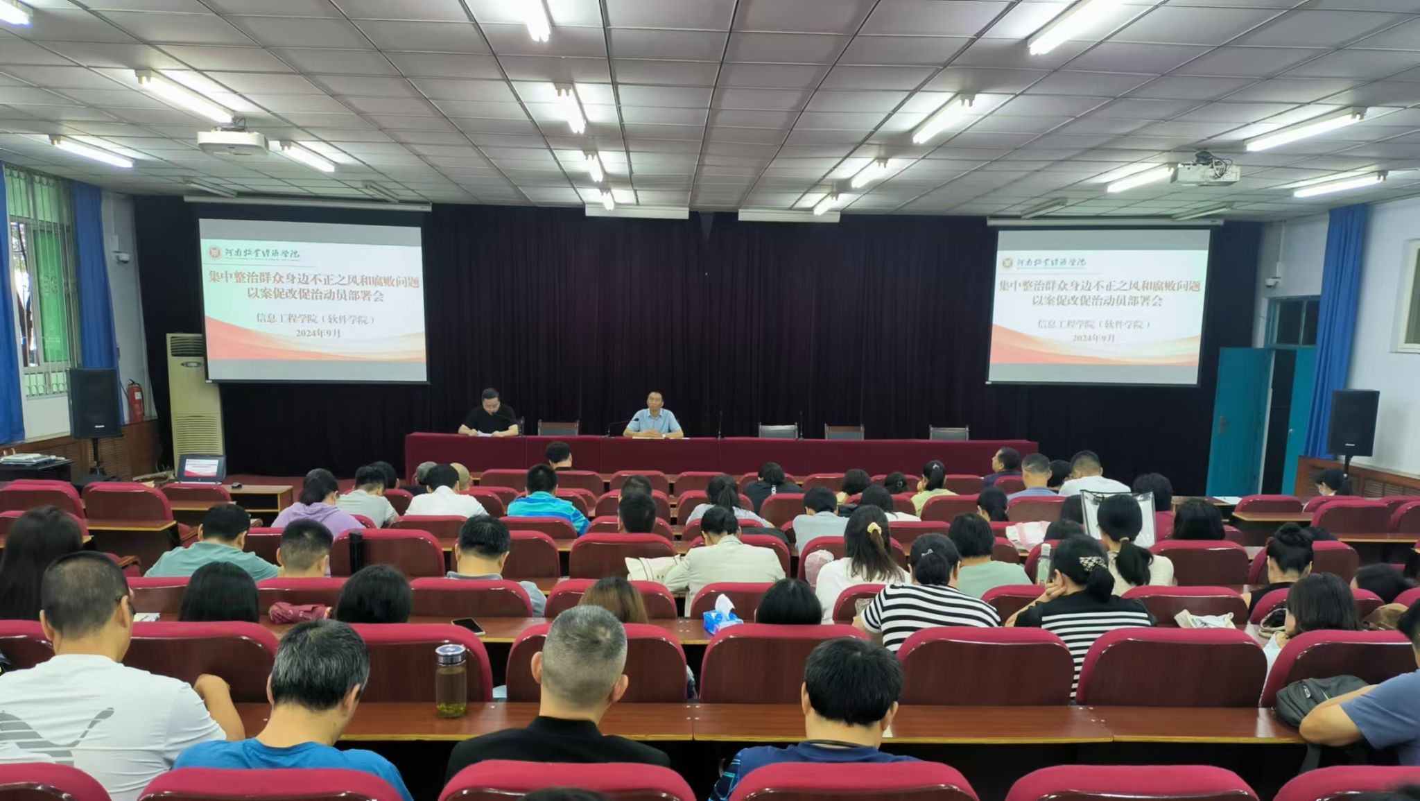 近日,太阳集团tyc5997(软件学院)组织召开集中整治群众身边不正之风和腐败问题以案促改促治动员部署会,院领导班子成员及全体教职工参加会议,会议由院党委书记杨行昌主持。