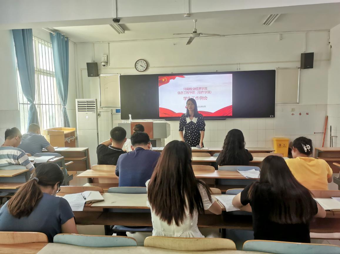 9月5日下午3点,太阳集团tyc5997(软件学院)在英才校区教学楼B205召开新学期学生工作会议,学院党委副书记刘向辉主持会议并作了重要工作部署,团委书记刘雪梅、团委副书记赵坤、英才校区全体辅导员参加了会议。