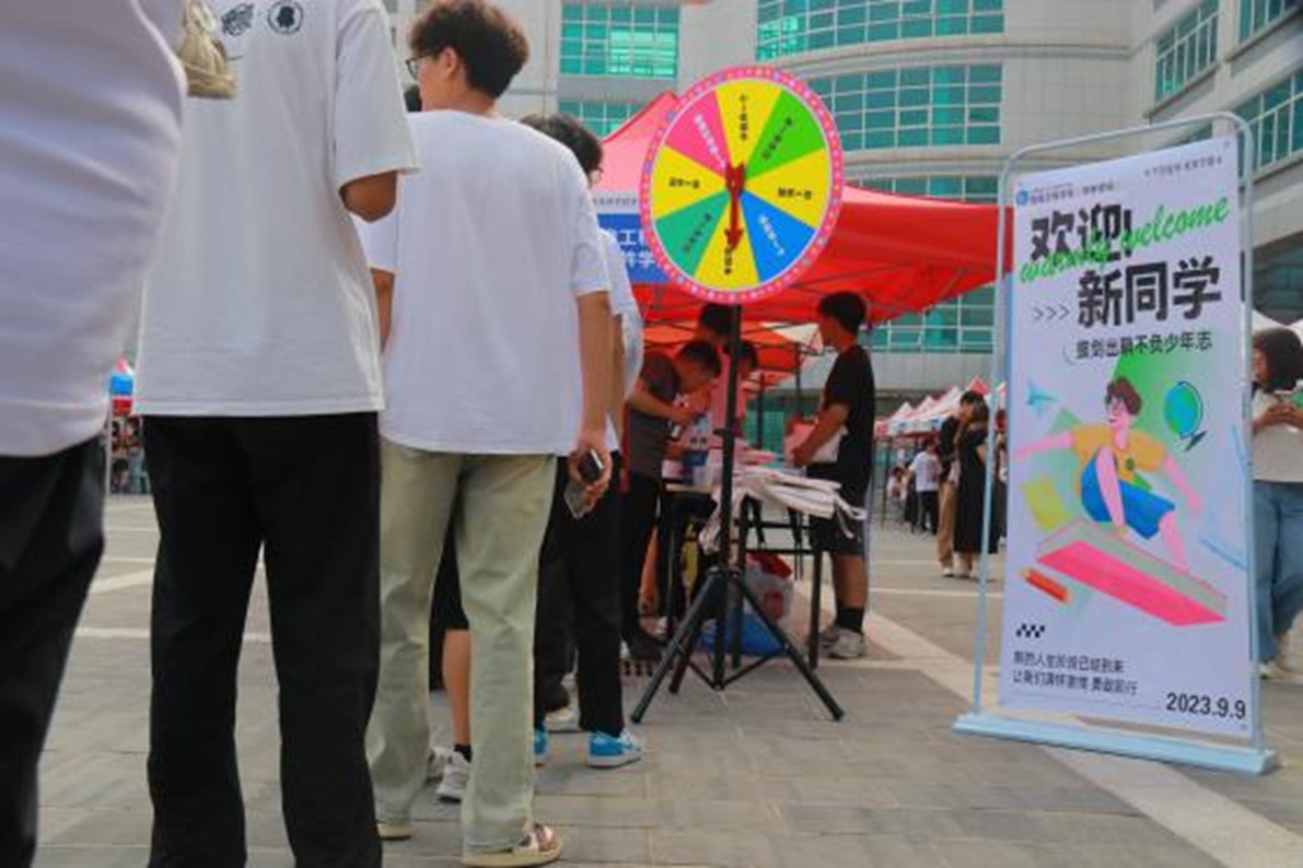 学院设置了“幸运大转盘”合影抽奖活动,通过在签名墙签名并拍照即可获得抽奖资格,订制手提袋、精美玻璃杯、可爱小挂件、透明文件袋,礼品虽小,心意十足,一时间成为全场最“吸睛”的存在,引来无数新生及家长驻足,深深地表达我院师生对新生到来的热情之心。